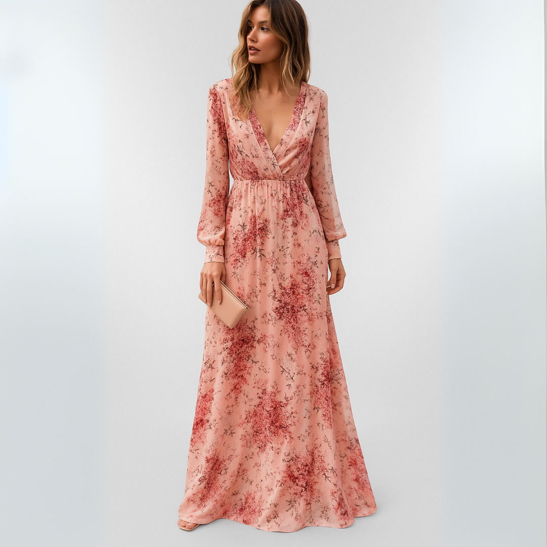 Embrace simple elegance with the PIA Bohemian Maxi Dress, a flowing dress with romantic, feminine style. With its deep V-neckline and delicate floral design, it is perfect for a casual night out, a beach vacation or a special occasion. The loose fit and graceful silhouette combine style and comfort.