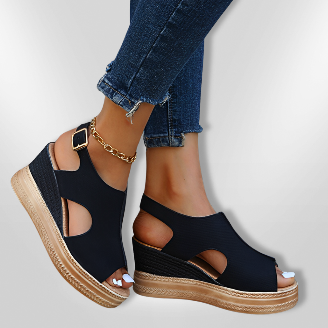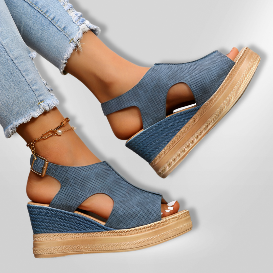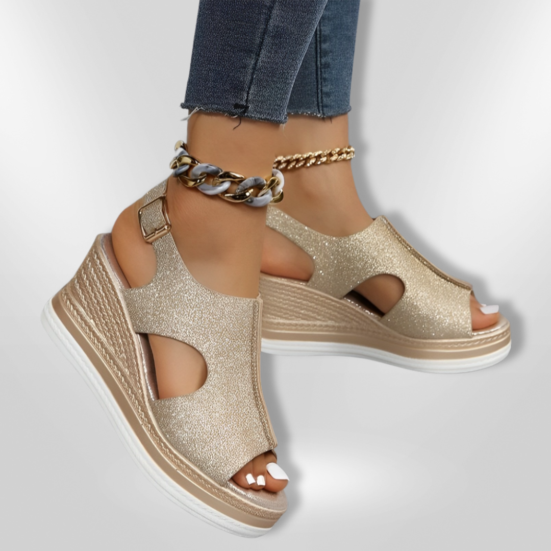 De BLIGE | sandalen met hoge hak bieden de perfecte mix van elegantie en comfort, met een strakke metallic afwerking en een ondersteunende sleehak. Deze sandalen zijn ontworpen om elke outfit te verfraaien en bieden zowel hoogte als stabiliteit dankzij het zachte plateau en de stevige enkelband. Of je ze nu draagt voor een avondje uit of een chique daglook, deze stijlvolle hakken houden je comfortabel en modieus.