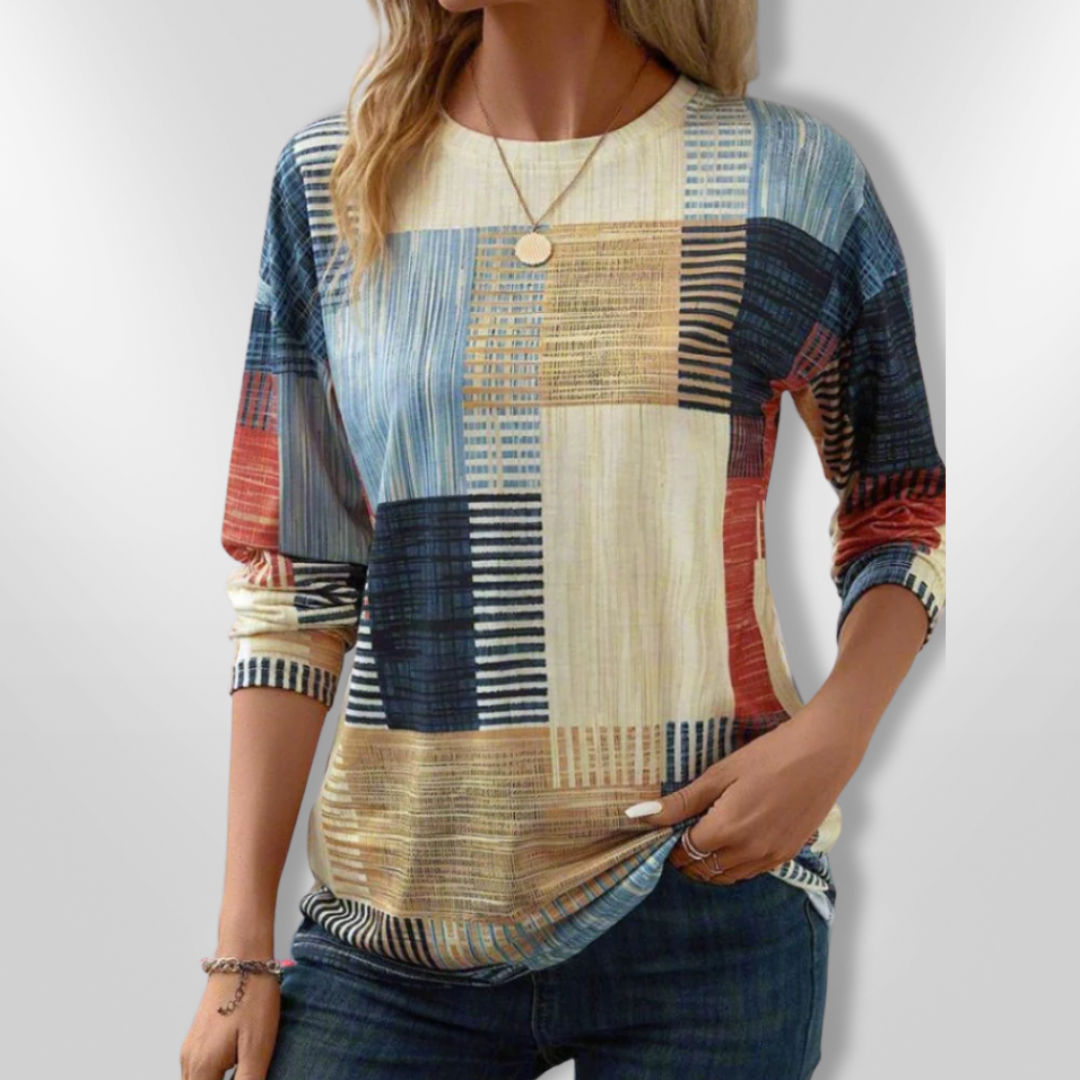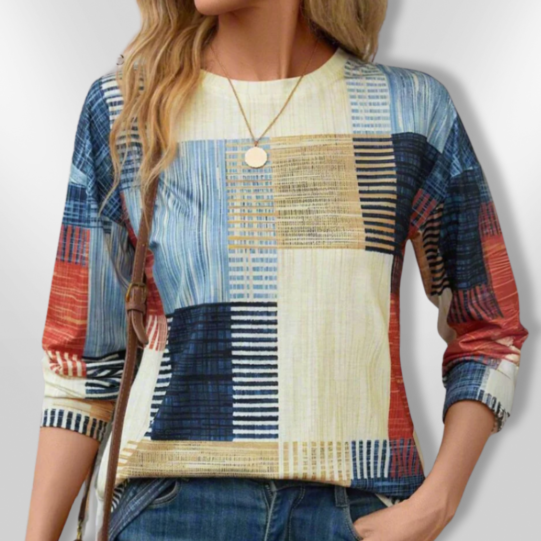The VALENCIA Elegance Modern T-shirt combines contemporary style with effortless comfort. With its striking geometric patchwork design, this tee adds an artistic touch to your everyday wardrobe. The relaxed fit and soft fabric make it an ideal choice for casual outings or stylish layering.